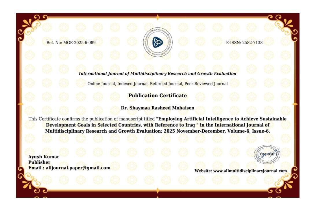 شاركت الدكتورة (شيماء رشيد) التدريسية في كلية الإدارة والاقتصاد – جامعة كربلاء، في المؤتمر الدولي للذكاء الاصطناعي والابتكار العلمي الذي أقامته جامعة فردوسي...