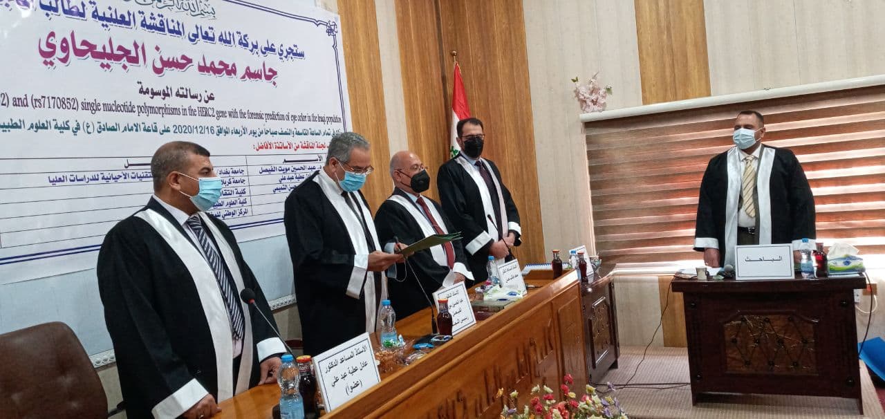 في دراسة هي الاولى من نوعها في العراق ناقشت كلية العلوم الطبية التطبيقية في جامعة كربلاء رسالة الماجستير الموسومة ” علاقة بعض التغايرات الجينية لجين HERC2 مع التنبوء الجنائي للون العين في المجتمع العراقي “.