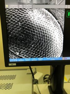 صورة عدسة عين نمله التقطت بالمجهر الالكتروني في كلية الطب البيطري وذلك من خلال الية التعاون مع كلية الهندسة حيث شكلت لجنة مشتركة من ذوي الاختصاص للاشراف على عمل وحدة المجهر الالكتروني