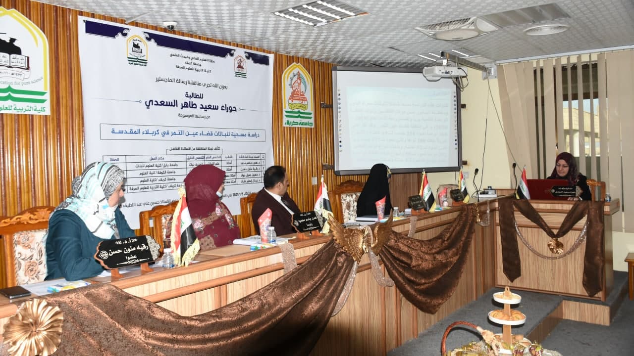 ناقشت كلية التربية للعلوم الصرفة في جامعة كربلاء رسالة الماجستير الموسومة (دراسة مسحية لنباتات قضاء عين التمر في كربلاء المقدسة) ,