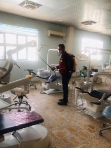 قامت كلية طب الاسنان في جامعة كربلاء وبالتعاون مع جمعية الهلال الاحمر العراقي فرع كربلاء بحملات دورية لتعفير وتعقيم مباني واروقة الكلية.