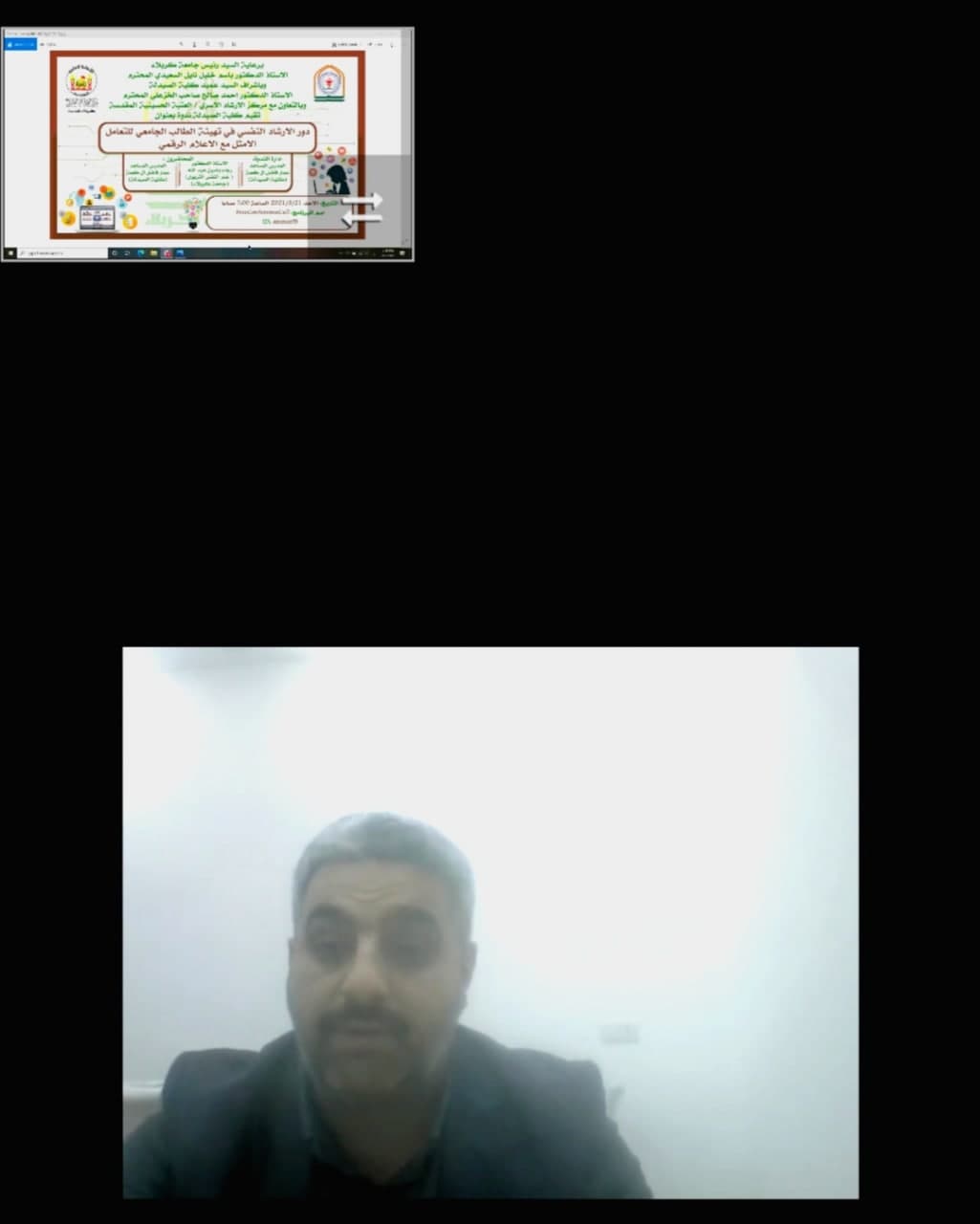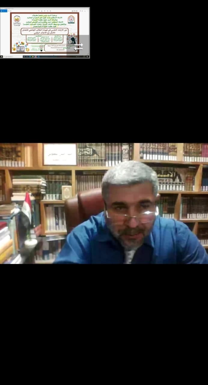 نظمت كلية الصيدلة في جامعة كربلاء ندوة عن دور الارشاد النفسي في تهيئة الطالب الجامعي للتعامل الامثل مع الاعلام الرقمي على منصة برنامج (fcc) وبالتعاون مع مركز الارشاد الاسري في العتبة الحسينية المقدسة .