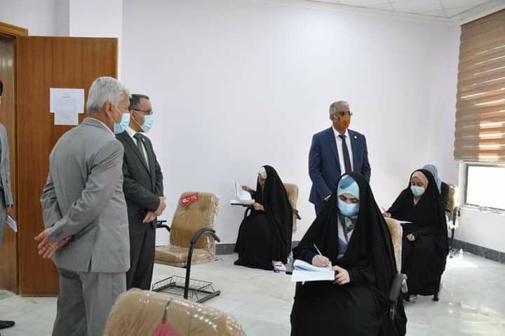 تفقد رئيس جامعة كربلاء الاستاذ الدكتور باسم خليل نايل السعيدي الامتحانات الحضورية لطلبة المرحلة الاولى الذين يؤدون الامتحانات النصفية للعام الدراسي 2020- 2021 , للاطلاع على سير واقع العملية الامتحانية ,