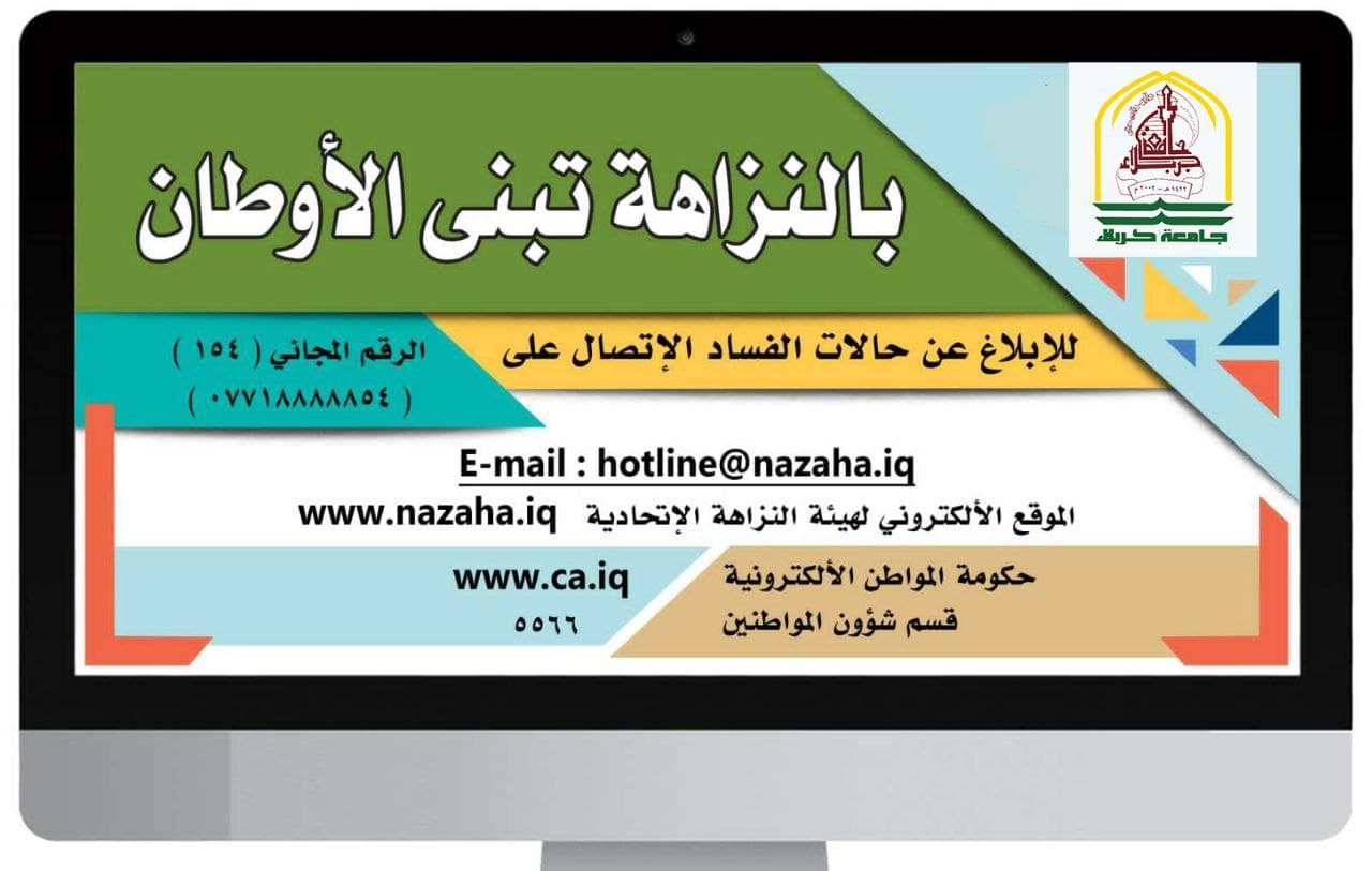 بناءً على توجيهات وزارة التعليم العالي والبحث العلمي حول نشر الوعي والتثقيف لدعم جهود الهيئة الوطنية في نشر مفاهيم النزاهة ومكافحة الفساد والاستغلال الوظيفي وحرمة المال العام.