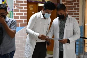 وقد بين الطلبة كيفية طرق وصول المبيد للجسم التي تتم من خلال الاستنشاق، والجلد والعين والفم.