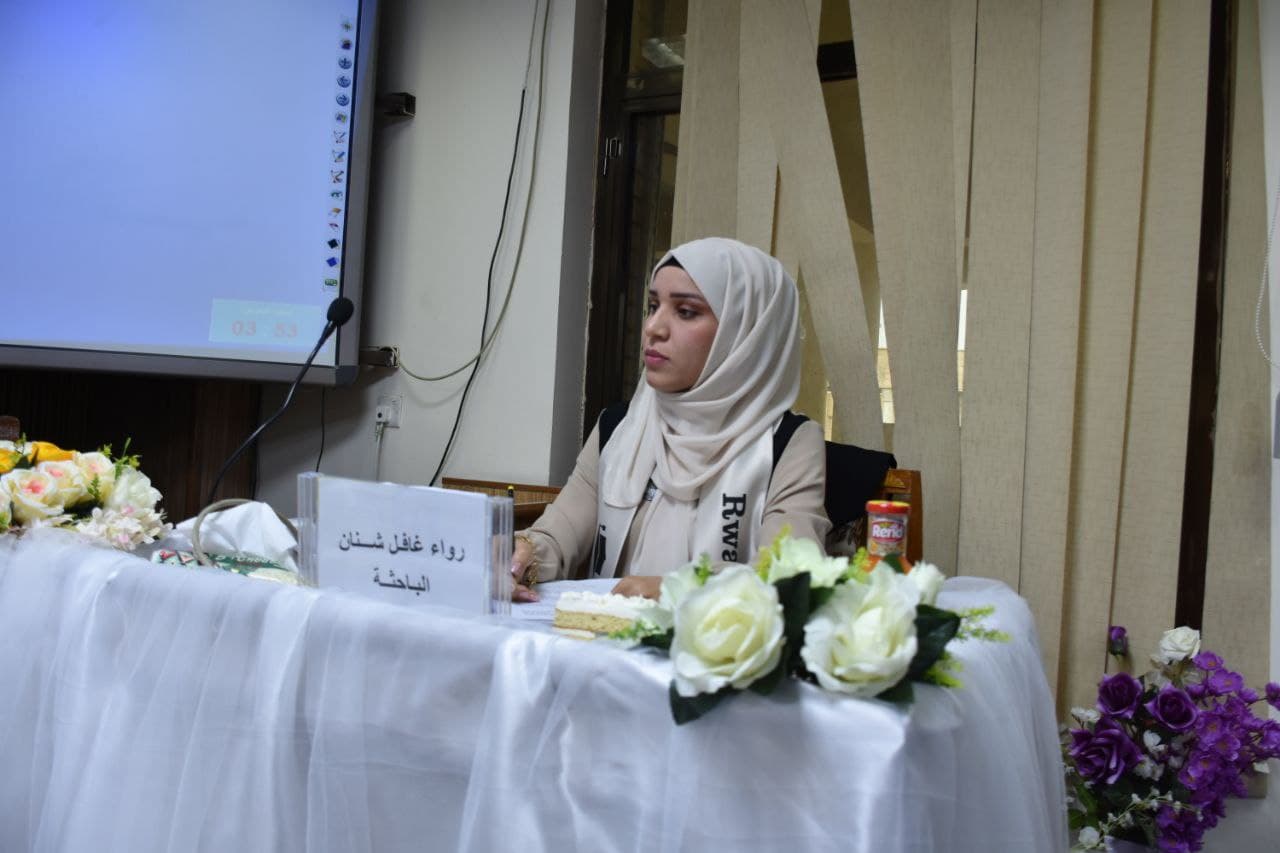 ناقشت كلية التربية للعلوم الصرفة في جامعة كربلاء اطروحة الدكتوراه الموسومة (تأثير الرش بالكاينتين ونانو البوتاسيوم في تحمل الذرة الصفراء( L. Zea mays) لمستويات ملوحة ماء الري ), للطالبة رواء غافل شنانة .