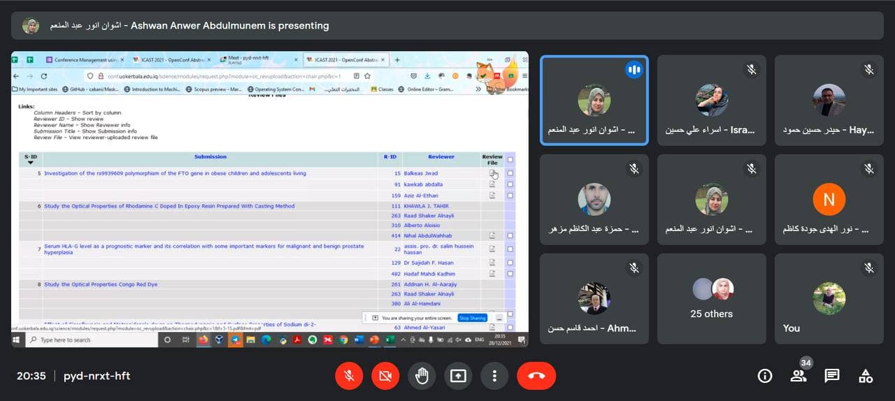 اقامت كلية علوم الحاسوب وتكنولوجيا المعلومات في جامعة كربلاء دورة تدريبية الكترونية بعنوان (Conference management using openconf) بمشاركة عدد المختصين والباحثين .