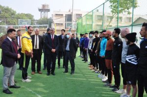 وقال السيد رئيس الجامعة ان كلية التربية البدنية بجامعتنا اكملت جزء كبير من المتطلبات الاولية التي يحتاجها طلبتها من ساحات وملاعب لتوفير بيئة دراسية ملائمة لهم مضيفا ان رئاسة الجامعة تسعى جاهده في حال توفر التخصيصات المالية على بدء العمل بمشروع كلية التربية البدنية في موقع فريحة والذي تم اكمال تصاميمه الاساسية ليضم ساحات وقاعات مغلقة ومرافق رياضية كبيرة من اجل المباشرة بالعمل به ضمن مشاريع عام ٢٠٢٢ واعرب السيد رئيس الجامعة عن شكره لعمادة كلية التربية البدنية لما قدمه من مبادرات خدمتا لابنائنا الطلبة .