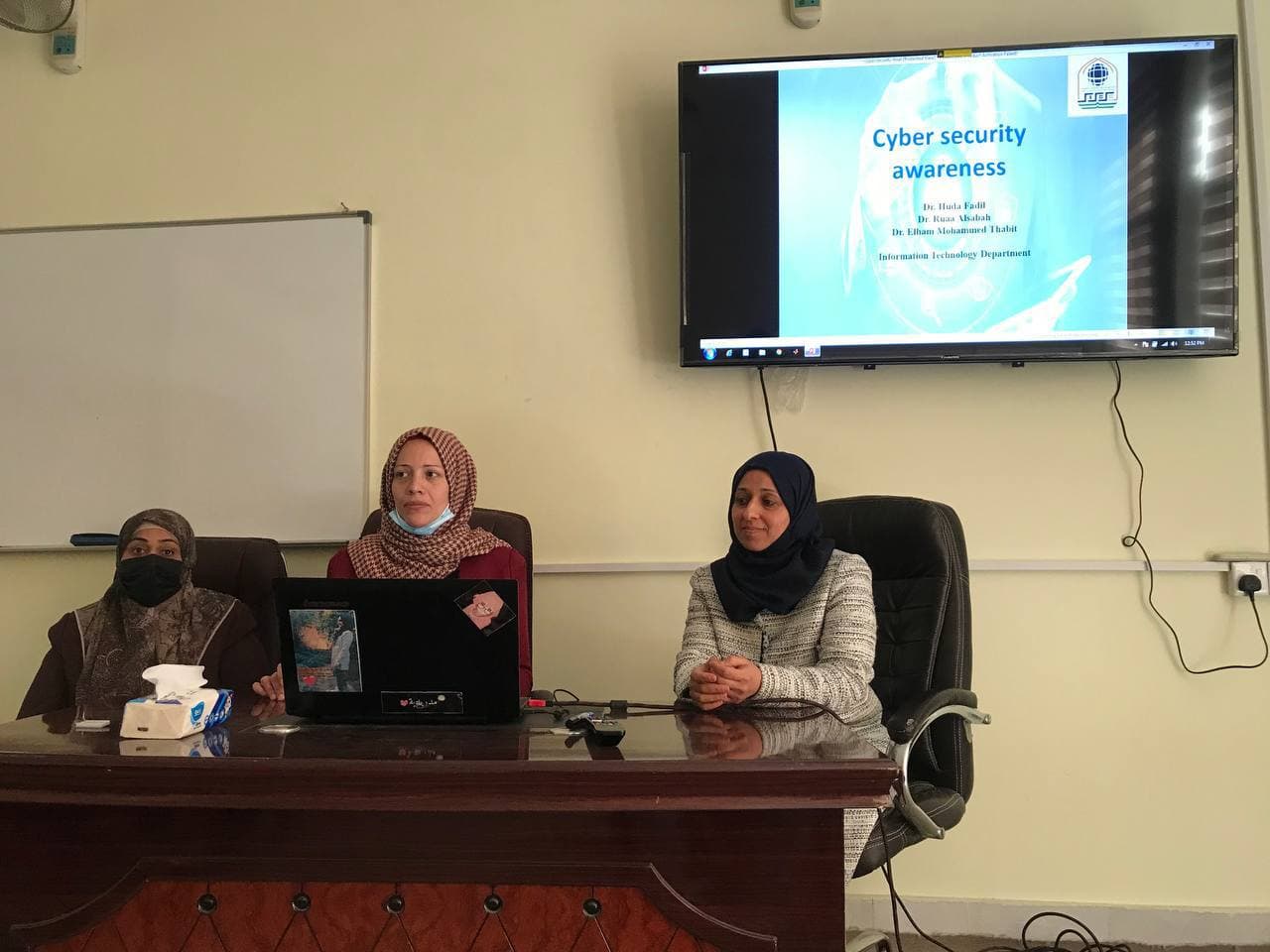 قامت كلية علوم الحاسوب وتكنولوجيا المعلومات في جامعة كربلاء وبالتعاون مع وحدة الارشاد النفسي والتربوي في رئاسة جامعة كربلاء ندوة علمية بعنوان ( نصائح للتوعية بالأمن السيبراني Cyber Security Awareness ) وعلى قاعة الدراسات العليا في قسم علوم الحاسوب من قبل التدريسيات ( م.د هدى فاضل علوان ) و (م.د رؤى عبد الرضا سعيد) و (م.د الهام محمد ثابت.) وكانت الجهة المستهدفة من الندوة هم شريحة الطلاب حيث ان الهدف من