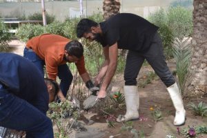 نظم مجموعة من طلبة كلية الزراعة بجامعة كربلاء حملة واسعة لتنظيف وتأهيل حقول وحدائق الكلية .
