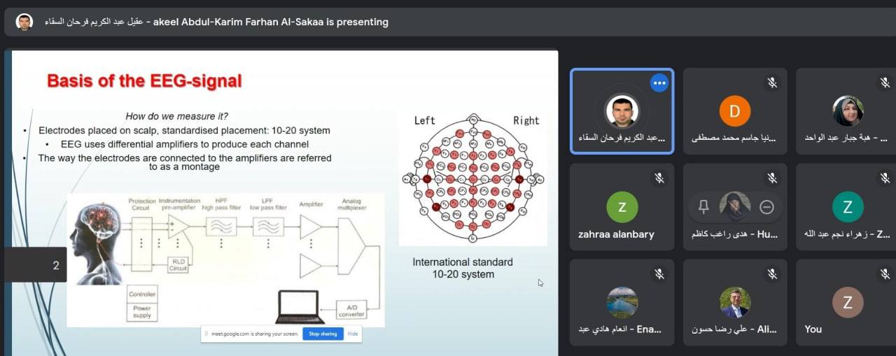 اقامت كلية علوم الحاسوب وتكنولوجيا المعلومات في جامعة كربلاء حلقة نقاشية الكترونية بعنوان استخدام إشارات الدماغ في علم البيانات “Use EEG signals in Data Science” , بمشاركة عدد من الباحثين والمختصين .