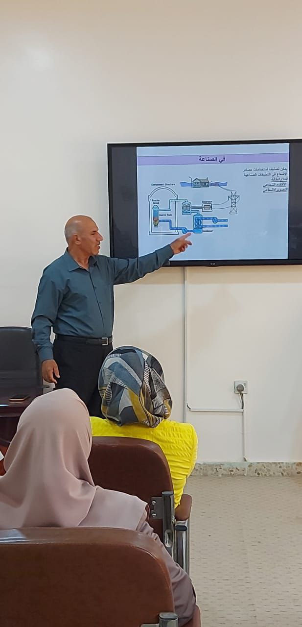 تضمنت الورشة التي حاضر فيها الاستاذ الدكتور عباس جواد عبد والاستاذ المساعد علي سلمان عبد الامير توضيح مصادر الاشعاع الطبيعي والصناعي والاستخدامات السلمية في توليد الطاقة الكهربائية وتحلية المياه وحفظ الاغذية وتعقيم المعدات الطبية وتقدير الآثار البيولوجية فضلا عن التشخيص الطبي ومعالجة الاورام السرطانية بالاشعاع .
