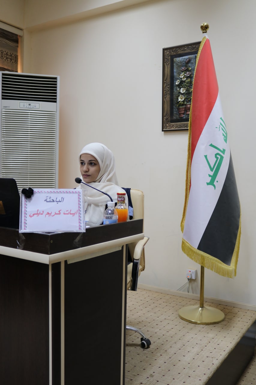 ناقشت رسالة ماجستير في كلية العلوم بجامعة كربلاء دراسة التوليف الأخضر لجسيمات النحاس النانوية باستخدام خلاصة أوراق نبات الآس: التوصيف للطالبة آيات كريم ديلي.