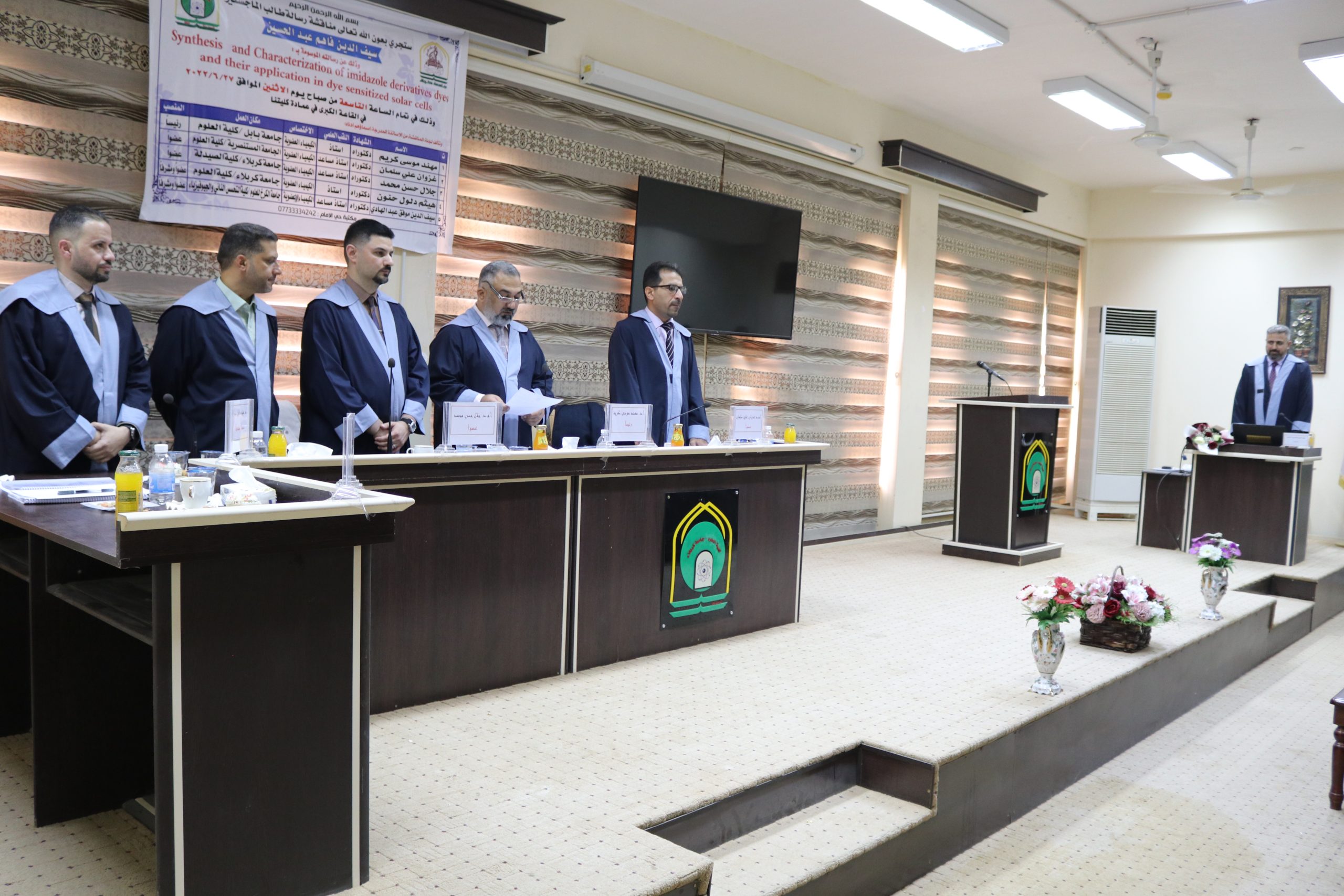 ناقشت رسالة ماجستير في كلية العلوم بجامعة كربلاء دراسة عن تحضير وتشخيص مشتقات صبغات الايميدازول وتطبيقها في الخلايا الشمسية المحفزة بالصبغة للطالب سيف الدين فاهم عبد الحسين .