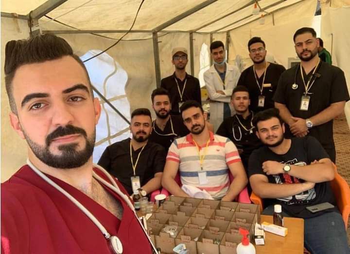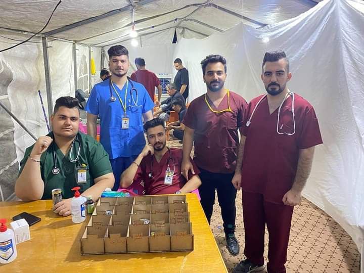 بدعم واسناد من رئاسة جامعة كربلاء تستمر المفارز الطبية لكلية الطب وبالتعاون مع المؤسسات الصحية بتقديم خدماتها الصحية والعلاجية للزائرين المشاركين في المسيرة الحسينية صوب كربلاء .