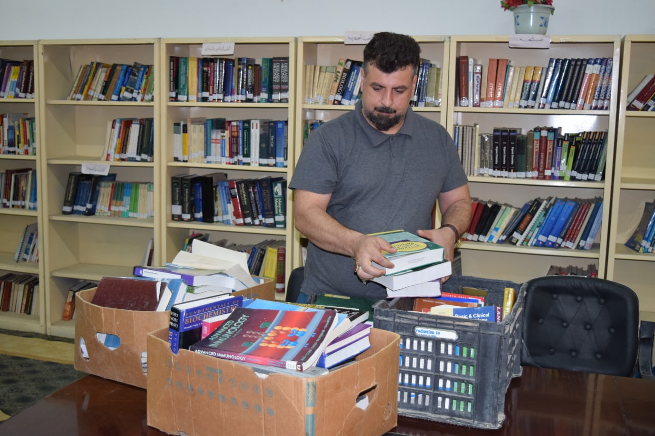 تبرع التدريسي في كلية الطب البيطري بجامعة كربلاء الدكتور محمد جاسم جواد /فرع الفسلجة ، بعدد من الكتب الطبية البيطرية المتنوعة لتعزيز مكتبة الكلية.