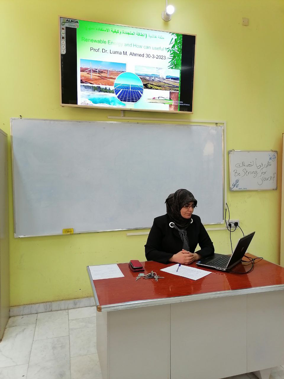 نظمت كلية العلوم في جامعة كربلاء حلقة نقاشية حول الطاقة المتجددة و كيفية الاستفادة منها للباحثين و موظفي و أساتذة قسم علوم الكيمياء