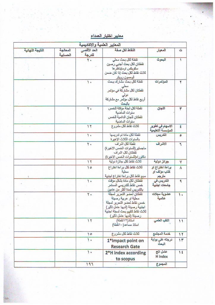 رابعا/المعايير الخاصة للترشيح لمنصب العميد