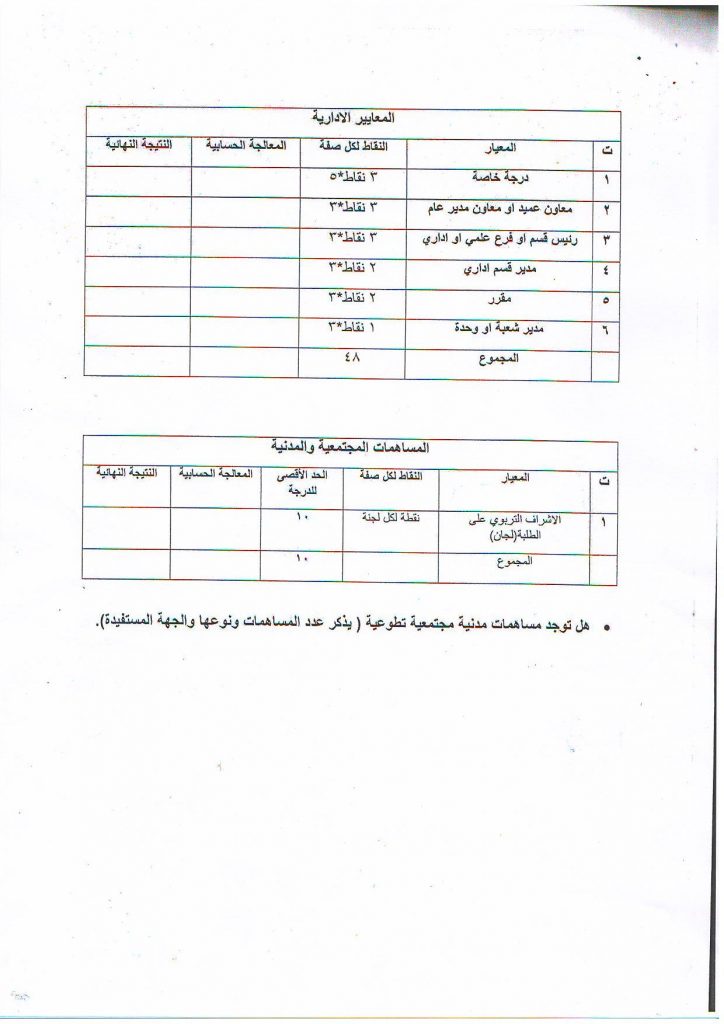7-لايحق للتدريسي التقديم لهذا المنصب ممن تبقى على خدمته اقل من اربع سنوات