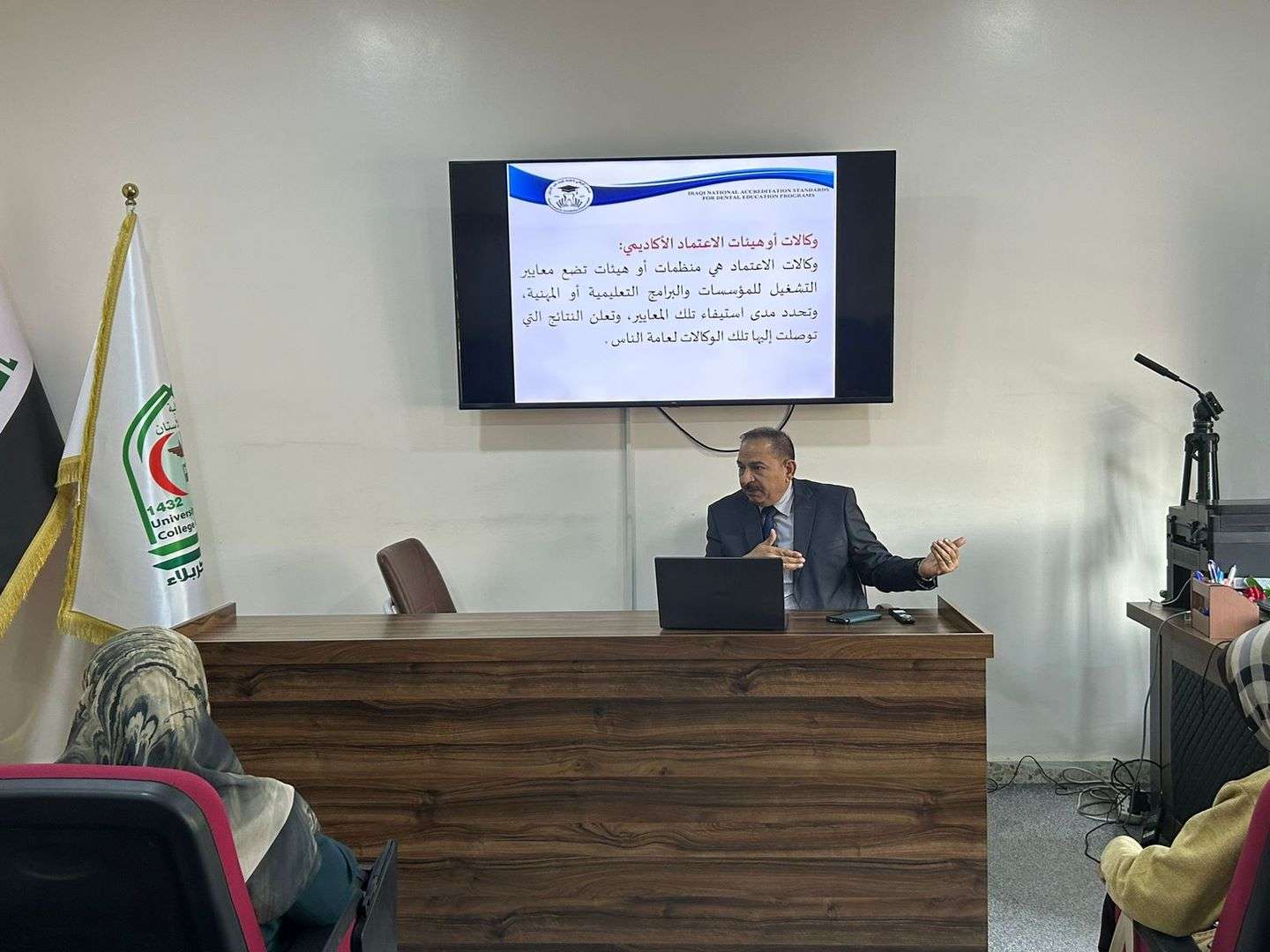 وجاء الاجتماع بهدف التعريف بمعايير الاعتماد البرامجي الوطني لكليات طب الأسنان ومساعدة الكليات في الحصول على الاعتمادية بأقصر الطرق.
