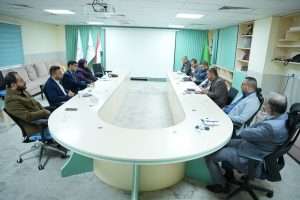 وضم الوفد الزائر مجموعة من رؤساء الأقسام في الكلية بهدف الاتفاق على بروتوكول عمل لتطوير قابلية الطلبة من خلال تنظيم الزيارات للأساتذة والطلبة إلى المستشفى للإطلاع على الأجهزة المتوفرة فيها.