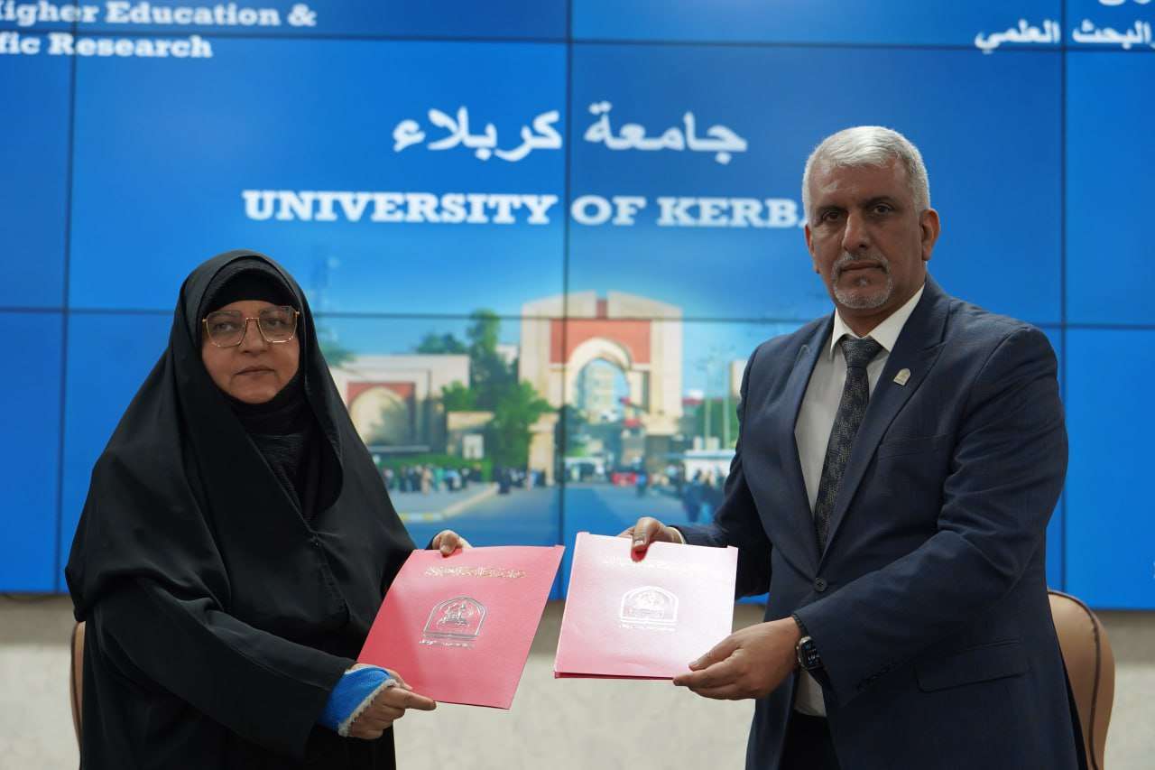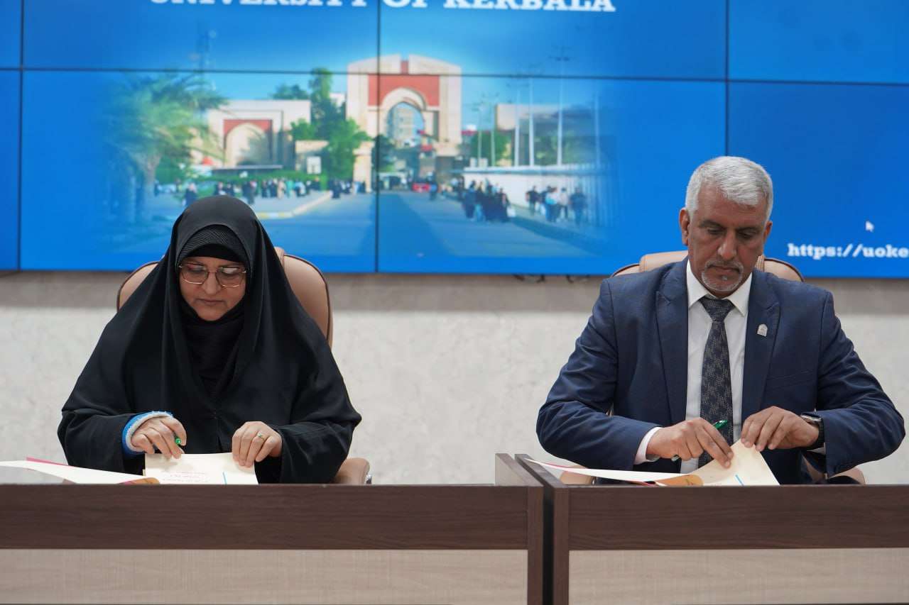 ابرمت جامعة كربلاء الية تعاون علمي مشترك مع جامعة الزهراء للبنات في كربلاء بهدف تطوير التعاون بين الجامعتين بما يخدم المسيرة التعليمية والاكاديمية في المحافظة وسبل توظيفها في المجتمع على المستويين المحلي والدولي وفق برامج علمية واكاديمية .