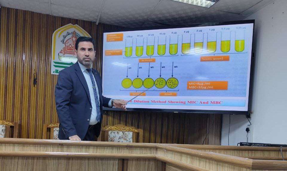 نظمت كلية التربية للعلوم الصرفة في جامعة كربلاء ورشة عملية عن اختبار حساسية البكتريا للمضادات الحيوية.