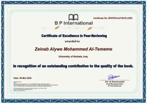 اعلنت جامعة كربلاء عن اختيار التدريسية زينب محمد عليوي من كلية الزراعة الأستاذة الدكتورة مقيما علميا في دار النشر (B P International) الدولية التابعة لمؤسسة B P International العالمية في الهند.