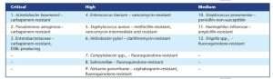شكل رقم 1 قائمة منظمة الصحة العالمية لأنواع للبكتريا المقاومة للمضادات الحيوية لمسببات الأمراض