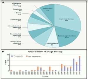 كما حذر البنك الدولي من أن الخسارة الاقتصادية الناجمة عن مقاومة البكتريا للمضادات الحيوية على مستوى العالم قد تتطابق مع الخسارة التي سببتها الأزمة المالية العالمية لعام 2008 وقد تصل إلى 2 تريليون دولار سنويًا بحلول عام 2050 إذا لم يتم اتخاذ إجراءات تصحيحية وسيؤدي هذا إلى اضرار بجودة حياة الفرد ( ( QOL ويفرض أعباء إضافية على المجتمع والدول ( Strathdee et al 2023 ) .اليوم ومع ظهور مشكلة مقاومة المضادات الحيوية في العالم والتي أصبحت تهدد الأقتصاد العالمي وجودة حياة الفرد بمختلف الدول فقد خضع أعادة أستخدام الفایروسات البكتيرية Bacteriophage ) )كعلاج في السبع سنوات الماضية لعملية تجديد قوية بعدما تم الأستغناء عنها لقرابة لأكثر من 100 عام بعد أكتشاف البنسلين ، وشوهد نمو عدد من التجارب السريرية في أوروبا والمملكة المتحدة و أستراليا لتقييم دور مختلف العاثيات البكتيرية لعلاج الالتهابات البكتيرية المقاومة للأدوية المتعددة لدى مرضى يعانون من حالات مرضية مختلفة حيث بينت الدراسات الحديثة إلى أهمية التجارب السريرية على العاثيات المعدلة وراثيًا والمركبة وتطويرها كبديل عندما تفشل المضادات الحيوية في علاج التهابات بكتيرية معينة وعلى الرغم من عدم وجود بيانات سريرية واضحة للتجارب ، فأن عدد متزايد من البلدان مثل ، الولايات المتحدة ،بلجيكا وفرنسا والسويد وأستراليا ، ومؤخرا المملكة المتحدة أنشأت “مسارًا موازيًا” حيث يمكن من خلاله استخدام العلاج بالعاثيات البكتيرية للاستخدام الرحيم على أساس كل حالة على حدة عندما تفشل خيارات المضادات الحيوية ( شكل رقم 2 ,3).