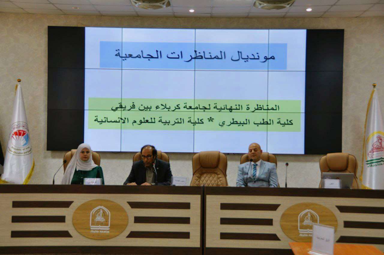 نظمت شعبة التأهيل والتوظيف والمتابعة في جامعة كربلاء المناظرة النهائية بين فريقي طلبة كلية الطب البيطري وكلية التربية للعلوم الإنسانية، بحضور رئيس الجامعة الاستاذ الدكتور باسم خليل نايل السعيدي، وعدد من عمداء الكليات والأساتذة.