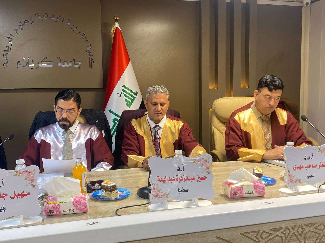 ناقشت اطروحة دكتوراه في كلية التربية البدنية وعلوم الرياضة في جامعة كربلاء تأثير تدريبات خاصة ومكمل (Alpha Gpc) في بعض المؤشرات الفسيولوجية والقابليات البيوحركية ودقة المهارات الهجومية للاعبي الكرة الطائرة دون 19 سنة.