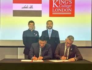 رعى وزير التعليم العالي والبحث العلمي الدكتور نعيم العبودي توقيع مذكرة تفاهم مع (King’s College London) على هامش مشاركته في المنتدى العالمي للتعليم المنعقد في المملكة المتحدة