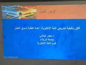 نظمت كلية التربية للعلوم الإنسانية في جامعة كربلاء، ورشة تدريبية عن: آفاق وظيفية لخريجي اللغة الإنجليزية: إعداد الطلبة لسوق العمل، حاضر فيها الدكتور حيدر كباشي.