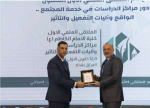 شارك التدريسي من كلية القانون بجامعة كربلاء الدكتور خالد العرداوي في الملتقى العلمي الأول المنظم عن دور مراكز الدراسات في خدمة المجتمع – الواقع وآليات التفعيل والتأثير، والذي نظمه مركز الدراسات والبحوث في كلية الامام الكاظم (عليه السلام) الجامعة للعلوم الإسلامية في بغداد.