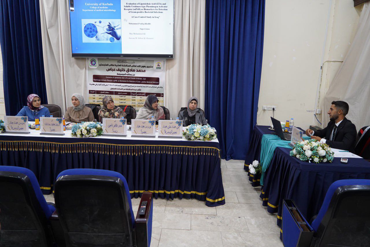 ناقشت كلية الطب في جامعة كربلاء رسالة ماجستير للطالب (محمد صادق خليف) تناولت دور حمض الليبوتييكويك والمستقبل الذائب لمنشط البلازمينوجين من النمط اليوروكيناز، كمؤشرات حيوية للكشف عن العدوى البكتيرية موجبة الغرام.