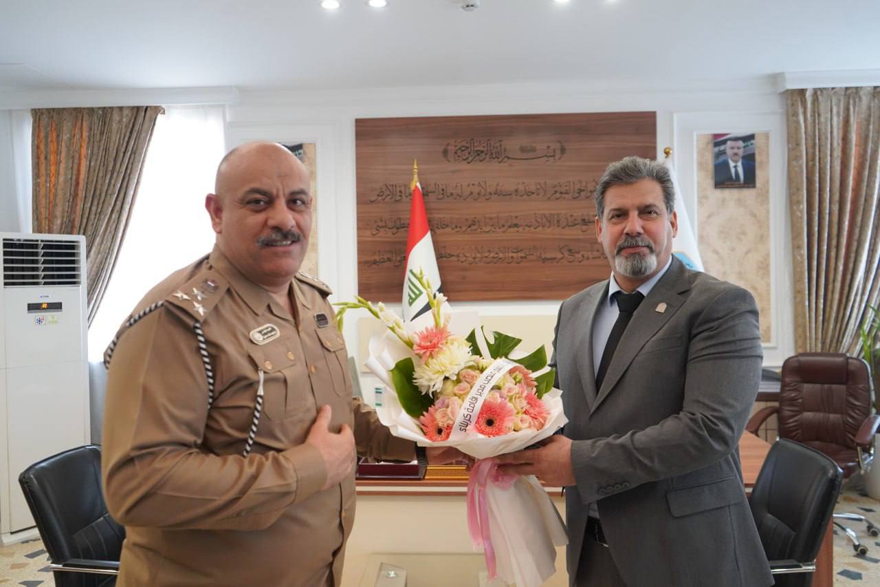 بحث رئيس جامعة كربلاء الاستاذ الدكتور صباح واجد علي، آلية التعاون المشترك مع مدير قسم الإقامة في المحافظة العميد إبراهيم مالك ماصخ العرداوي.