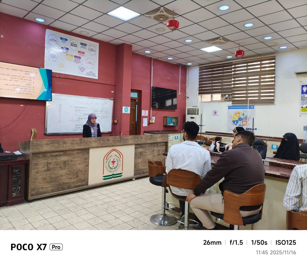 الدورة التدريبية التي قدّمها التدريسيان (ضرغام هاني كاظم) و(هبة مؤيد خضير)، والمعاون الكيميائي (زهراء حافظ حميد) شارك فيها عددٌ من طلبة المرحلة الأولى.