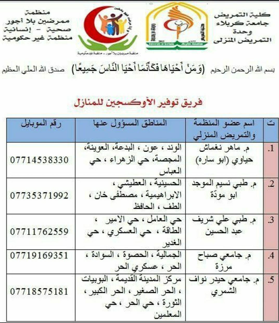 اطلقت وحدة التمريض المنزلي في كلية التمريض بجامعة كربلاء حملة طبية لمساعدة المصابين في وباء كورونا والمحجورين منزليا