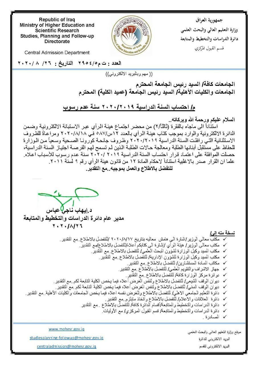 التعليم تعلن احتساب العام الدراسي 2019/ 2020 سنة عدم رسوب.