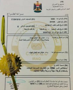 وقال الباحث الدكتور عدنان عبد الجليل لهوف ان البراءة منحت من الجهاز المركزي للتقييس والسيطرة النوعية , وتهدف الى استخلاص الـDNA الجينومي من عدة فطريات ممرضة لعوائل نباتية مختلفة باستخدام طريقة سهلة وسريعة ورخيصة وذلك لغرض اجراء العديد من التحاليل الجزيئية,