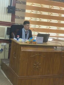 ناقشت كلية التربية البدنية وعلوم الرياضة في جامعة كربلاء رسالة الماجستير الموسومة (أثر تمرينات خاصة في تطوير الإدراك الحس-الحركي والذات المهارية في تعلم اللكمات الجانبية بالملاكمة للطلاب) وعلي قاعة المناقشات في الكلية ,