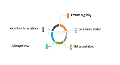 ⦁ Healthy Sleep: Good sleep is very important for overall health, for feeling better physically and mentally, and for reducing the risk of obesity and heart disease. The average amount of good sleep is between 7 and 8 hours per night.