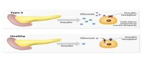 Figure 1The diference between insulin receptors in anormal person and a T2DM